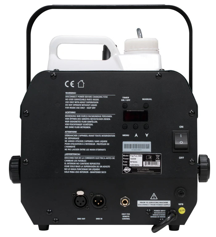Make your events extraordinary with the ADJ Lighting Fog Fury 3000 Fog Machine. Enhance your performances, create magical environments, and leave your audience in awe. Optional accessories like the FF23TR Timer Remote and FF23WR Wireless Remote are also available for added convenience. Elevate your productions to new heights of awesomeness with the Fog Fury 3000 Fog Machine!