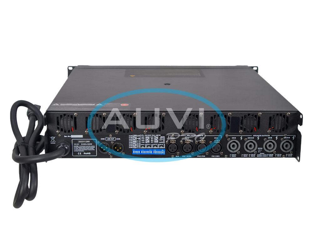 The AUVI Prod FP20Q is a high-performance 20,000 watt 4-channel power amplifier designed for professional subwoofer systems, large PA setups, touring rigs, and event production.