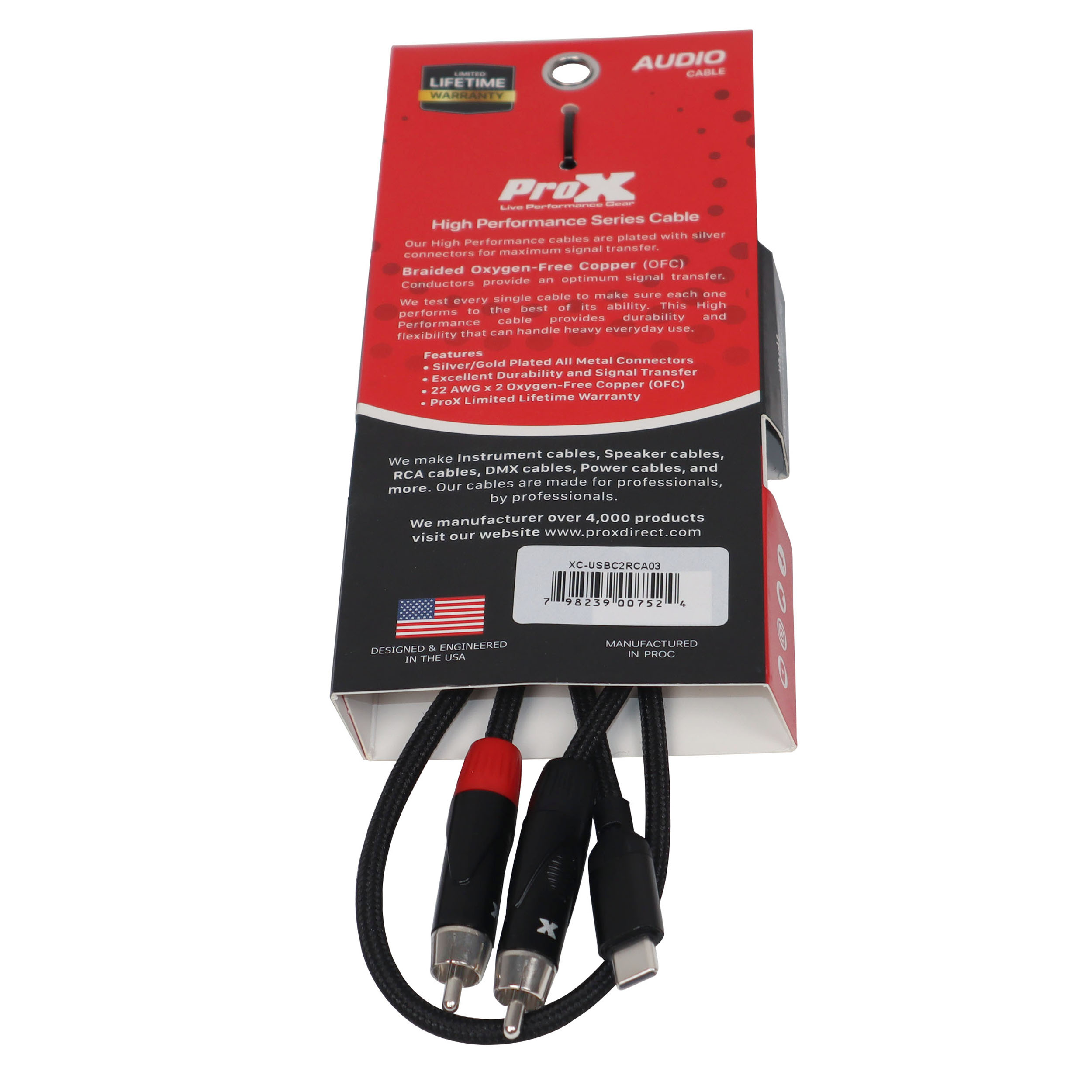 Search Terms: ProX USB-C to RCA cable, USB-C to dual RCA, USB-C audio cable, USB-C to RCA adapter, USB-C to mixer cable, USB-C to amplifier, USB-C to PA system, ProX XC-USBC2RCA03, high-fidelity USB-C audio, USB-C to RCA 3 ft