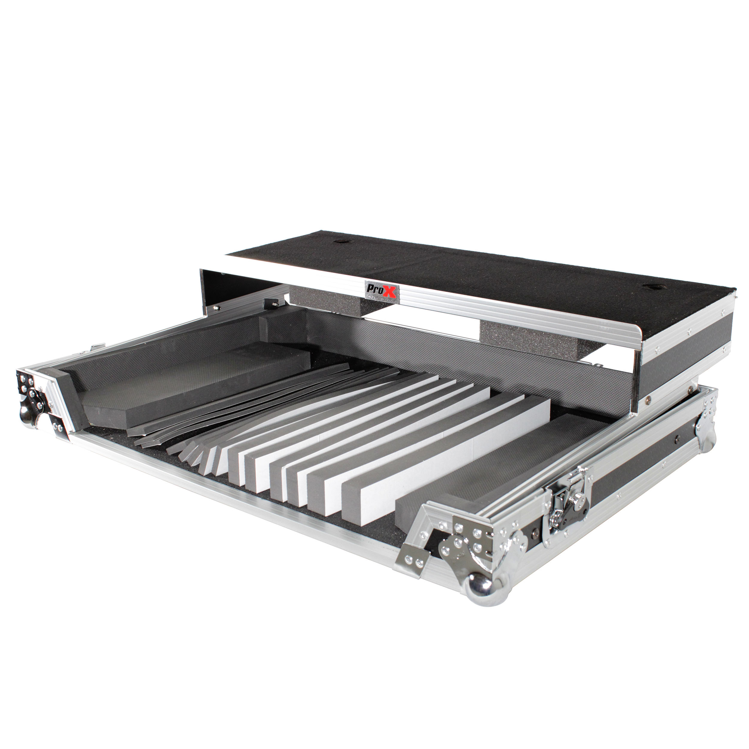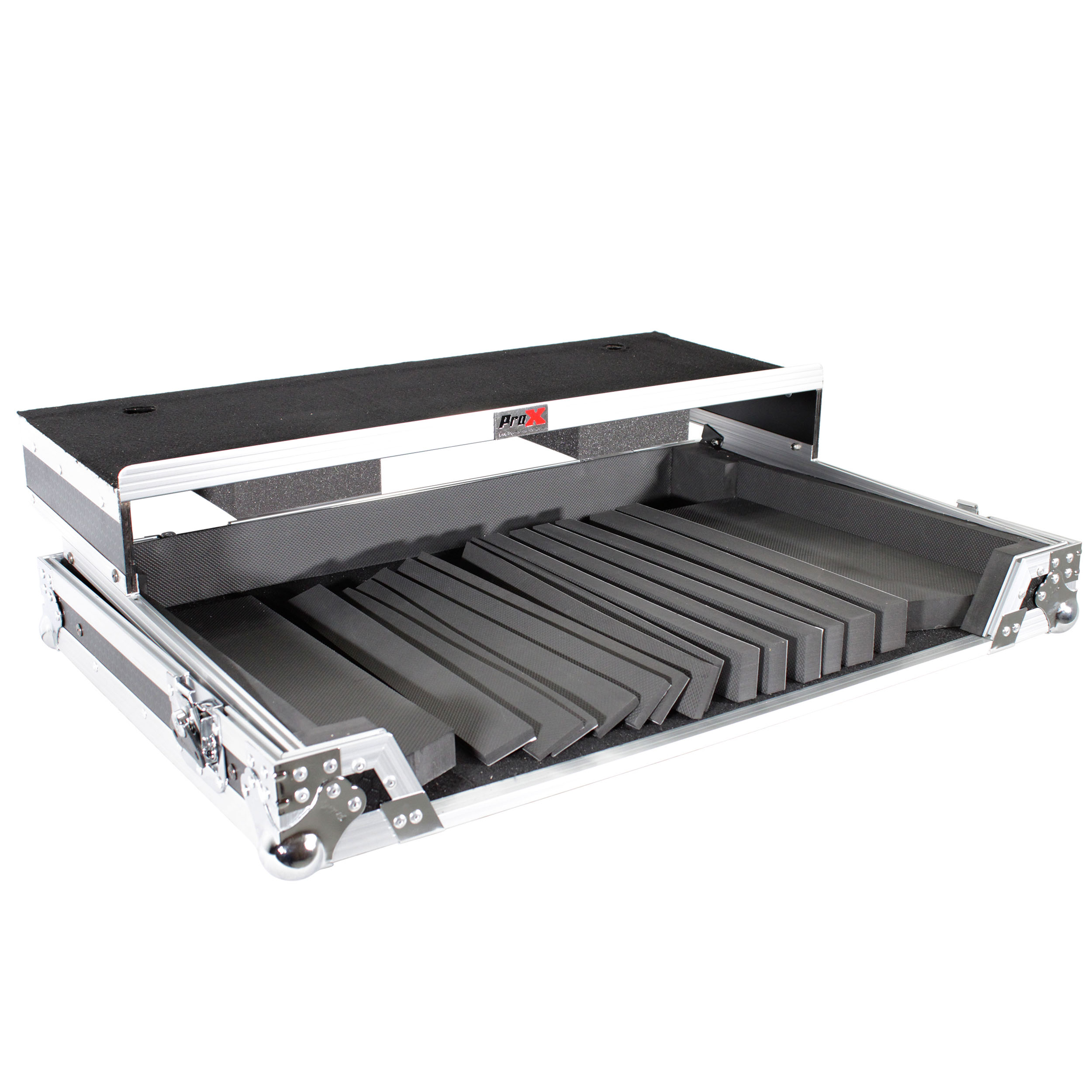 The ProX XS-UXXLT Universal Flight Case is designed for medium- to large-size Digital DJ Controllers, providing a fully customizable, high-density foam interior to protect your gear. Constructed from ProX’s Signature Series 3/8" Gig-Ready Series Plywood, this road-ready case features reinforced steel ball corners, recessed handles, and durable butterfly latches. A sliding laptop shelf, cable management space, and removable front/back panels offer convenient access while keeping your controller secure. The Honeycomb Digital laminated surface adds style and scratch resistance, making it perfect for DJs on the move.