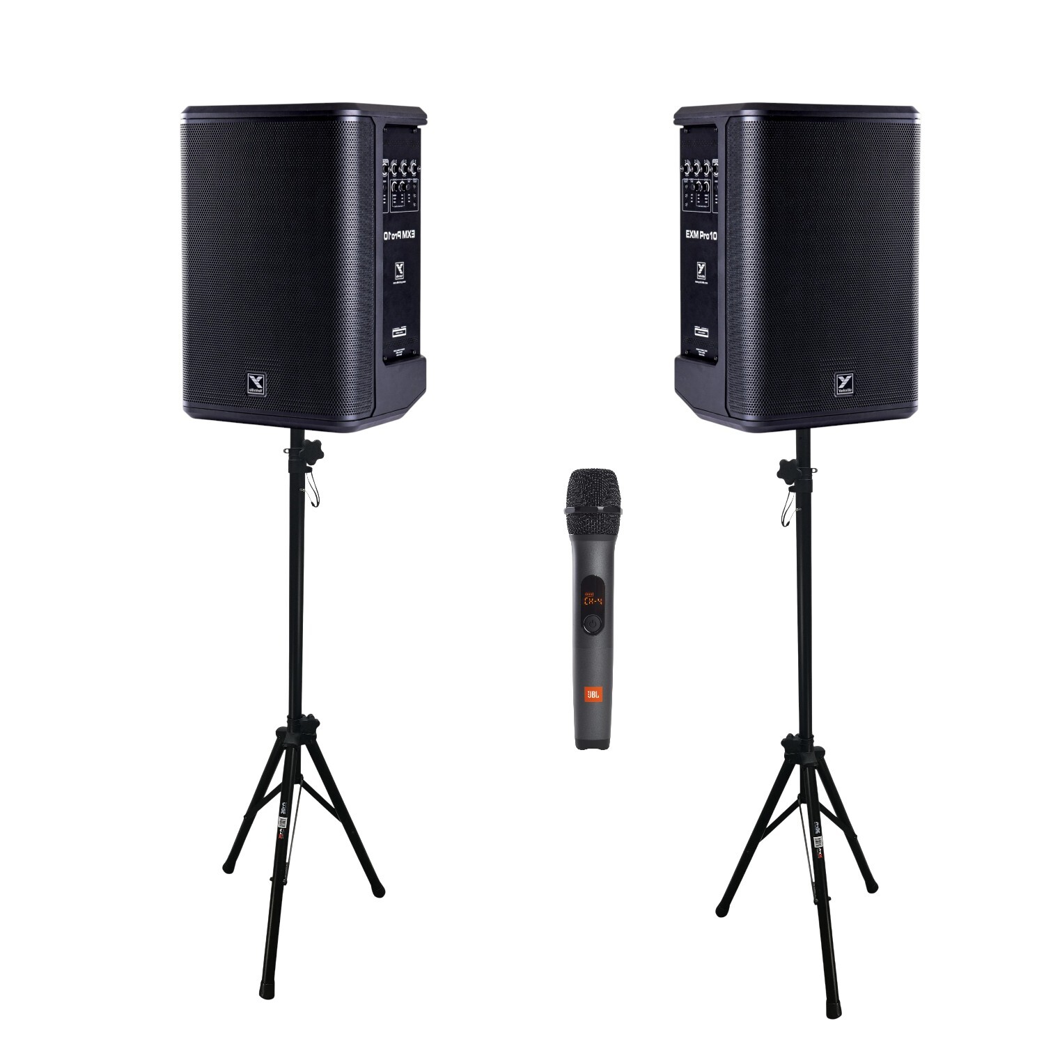 2 Speakers EXM Pro10, 2 Tripod Stands, 1 JBL wirelss Mic